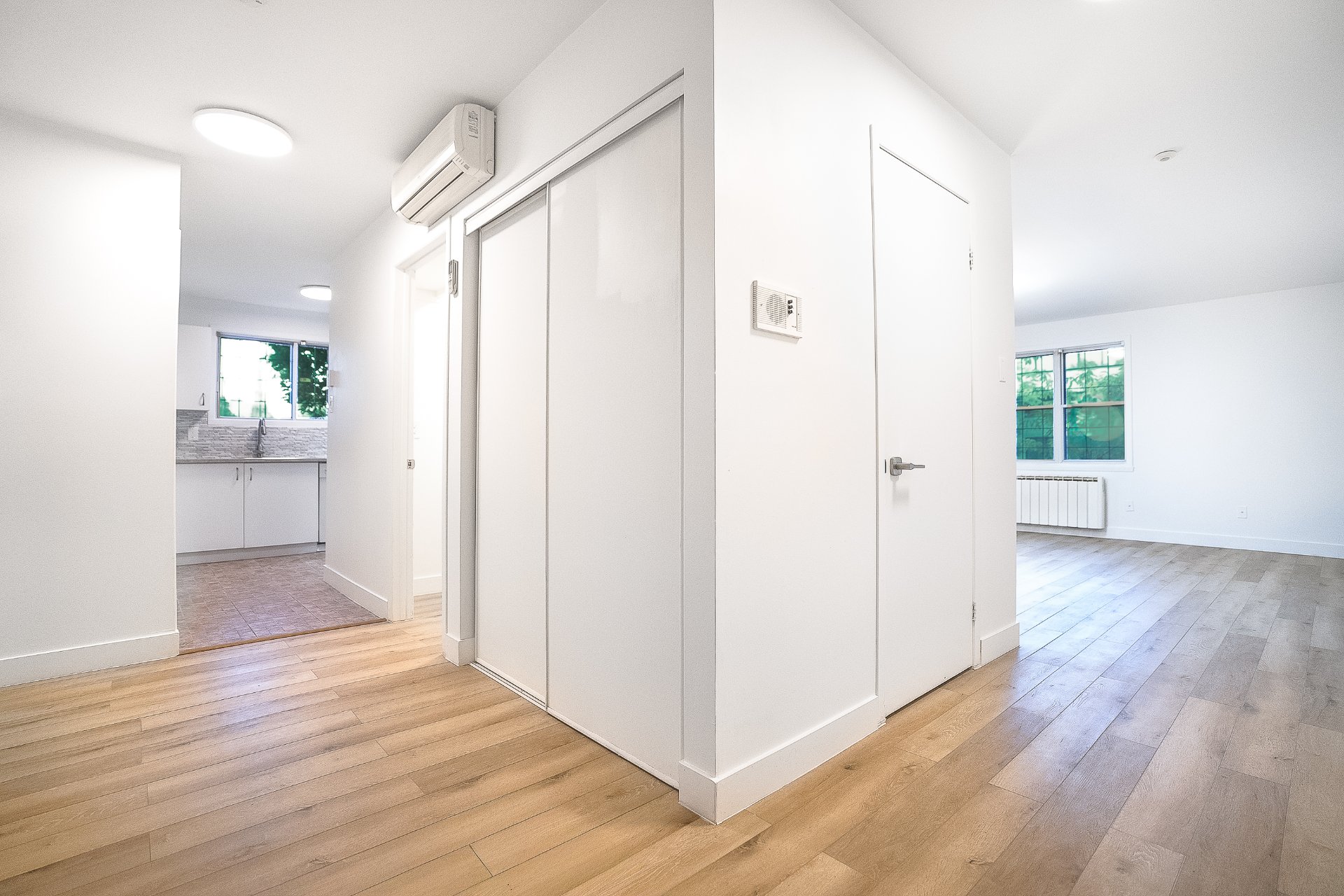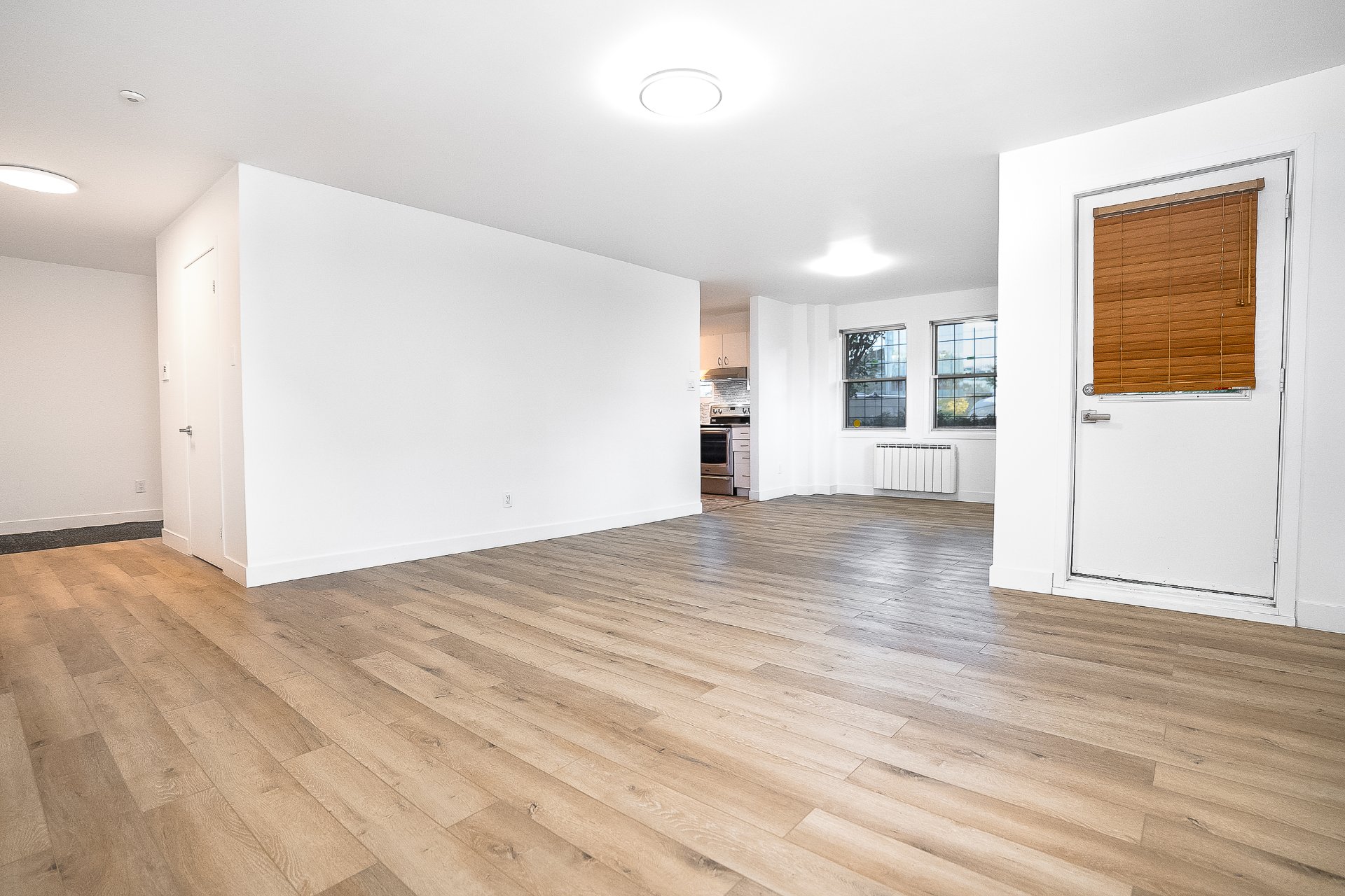 Très proche Métro Papineau et des services. Très grande unité de coin au RDC de 1044 pieds carrés avec de 2 grandes chambres. Rénové au complet en 2025. Une superficie rare dans Ville-Marie. Le condo est un beau clef en main, salle de bain et cuisine refait à neuf. Condo lumineux. Une salle de lavage fermée et un grand rangement dans le condo. Possible de l'avoir tout meublé en extra. Possible un garage pour 200$ par mois. Occupation rapide. Animaux possible.