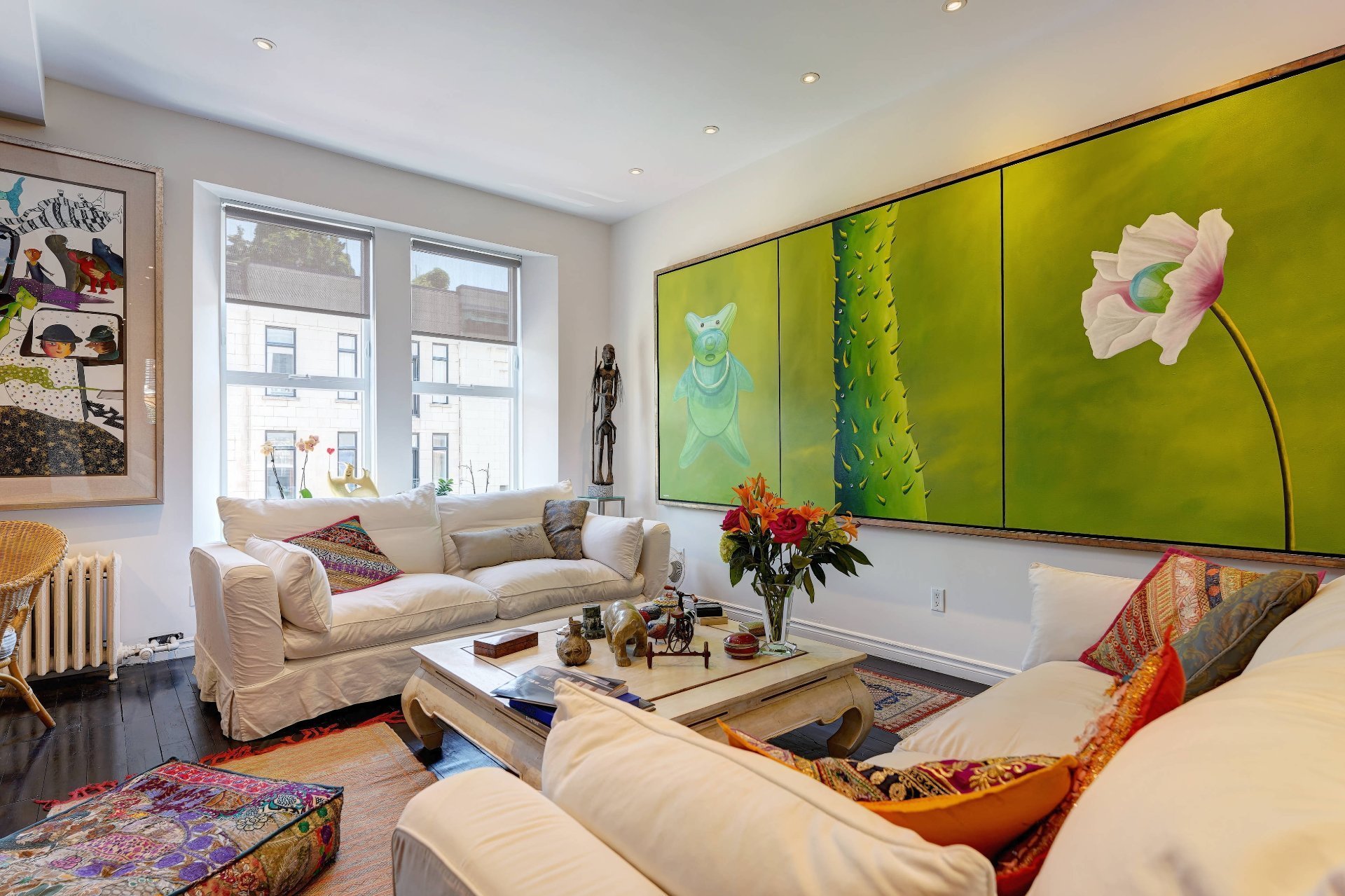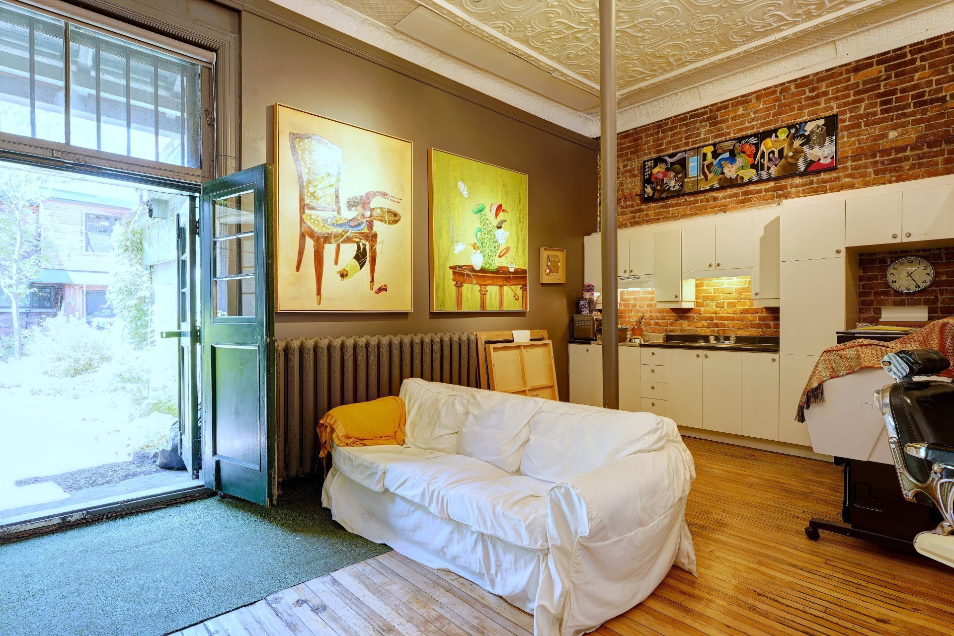 Hauteur sous plafond 10 pieds. Grande fenestration.